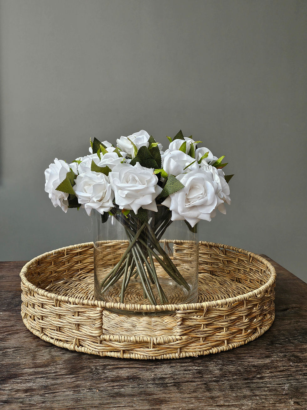 MAGNOLIA & PUSSY WILLOW, WHITE VASE